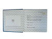 Обложка: плотный картон с отделкой из качественного кожзама — прочная и приятная на ощупь. Лаконичный дизайн с синей отделкой подходящий для первых снимков малыша.